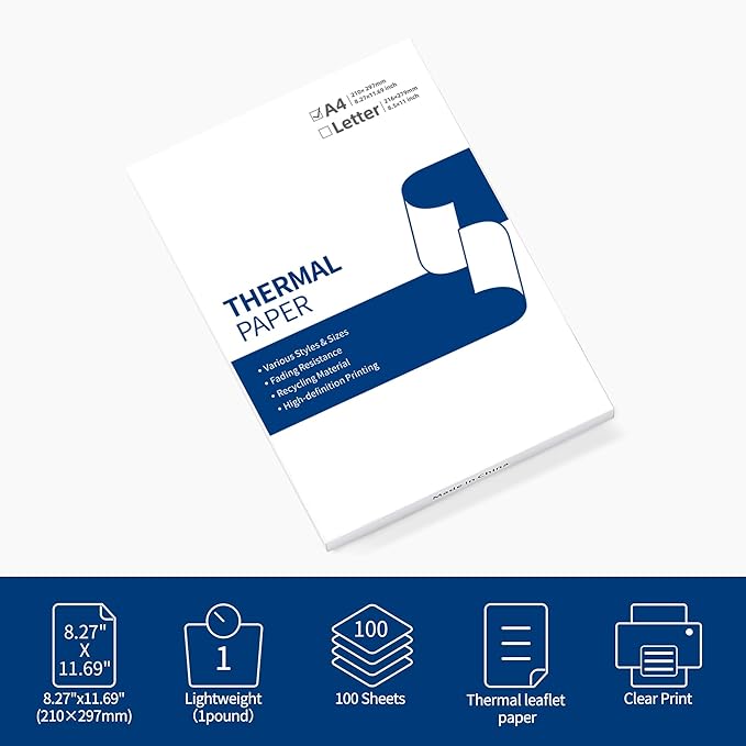 Thermal Paper, Thermal Printer Paper 8.27 x 11.69 Size, Thermal paper for portable printer Compatible with Hprt、Phomemo、Itari M08F MT800 Brother Pocket PJ763MFi Letter folded Paper 100 sheets