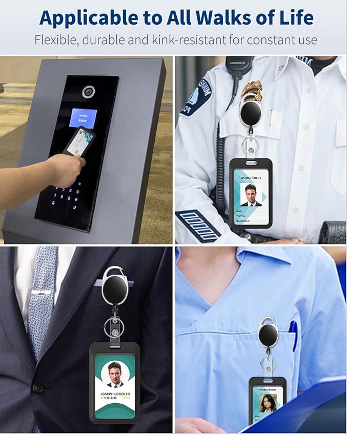 - Heavy-duty: Sturdy plastic case is resistant to heat, wear or breaking. Stainless steel badge reel endures 100,000 pulls. And its retractable nylon cord allows for smooth extension up to 24 inches.