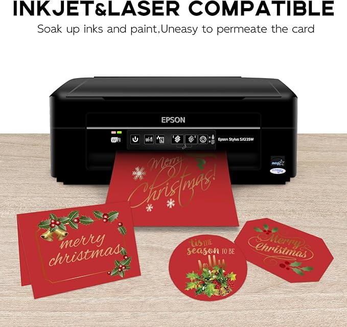 - Printer Friendly: Sturdy and versatile, our christmas red card stock paper is compatible with most types of inkjet, laser printers and photocopy machines; Please check the maximum thickness specification of your printer before printing