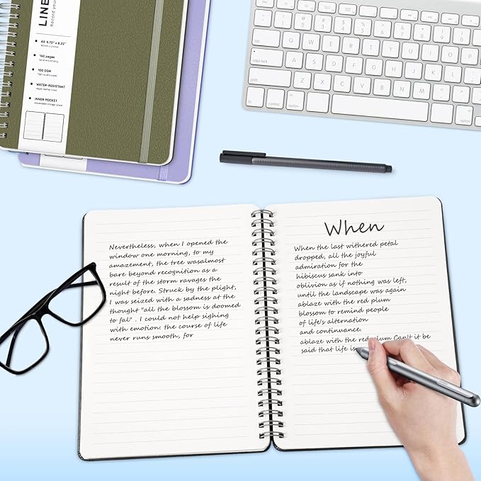 - Sturdy Spiral Twin-wire Binding & Inner Pocker: Feature a sturdy double spiral coil binding, the journaling notebooks are easy to flip the pages, flat and fold. Perforated inside pages allow to tear off unwanted pages. The back cover of the notebook journal includes an expandable pocket to store small objects. The elastic band on the outside of the lined notebook can also help you fix and mark pages perfectly. Perfect spiral bound journal notebooks for work, college supplies.
