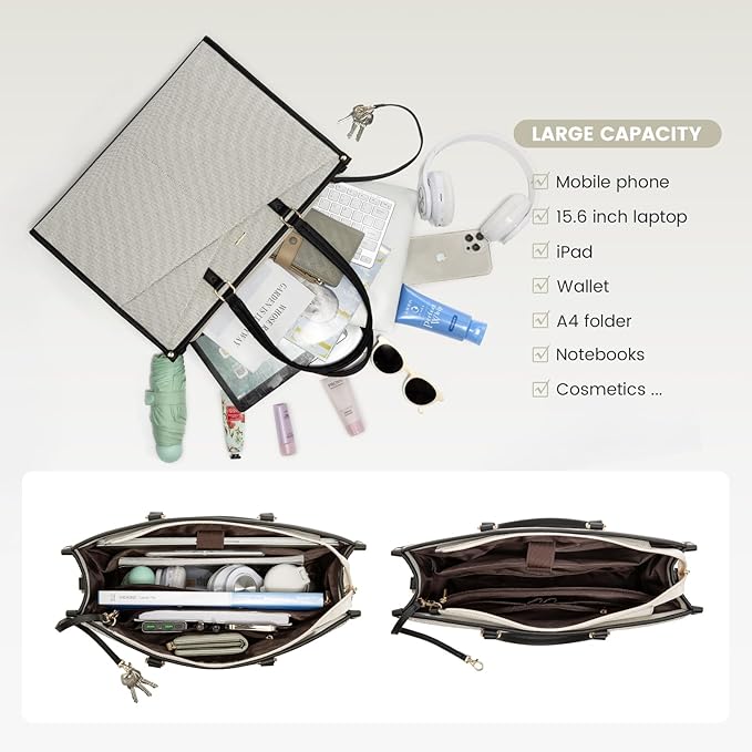 - Large Capacity Laptop Bag for Women: Spacious Fashion Laptop Bag designed specifically for women, Suitable for 15.6 inch and smaller Laptop. Thickened soft protective foam pad, velcro strap secure to fully protect your laptop and tablet. The size is perfect for your laptop and all the essential that you need throughout the day.