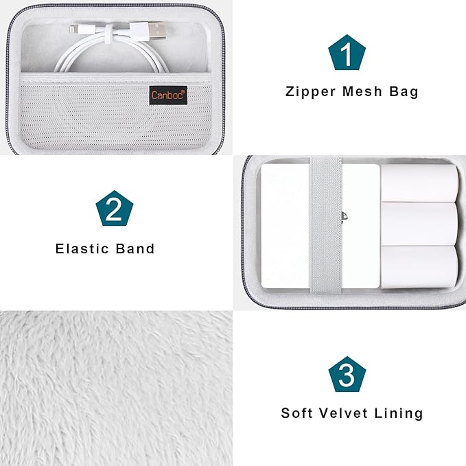 - 【Simple and Practical Design】 The M02 label maker case inner mesh pocket storage space keeps the items well-organized, and can effectively store small label printer accessories. Built-in elastic band can fix label printer and prevent m02 printer from accidentally falling.