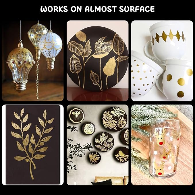 - Multi-Scenario Creativity: From DIY home décor (personalized wine glasses, photo frames) to professional art (calligraphy, scrapbooking) and event styling (wedding invitations, party signage), these pens turn ideas into golden masterpieces!