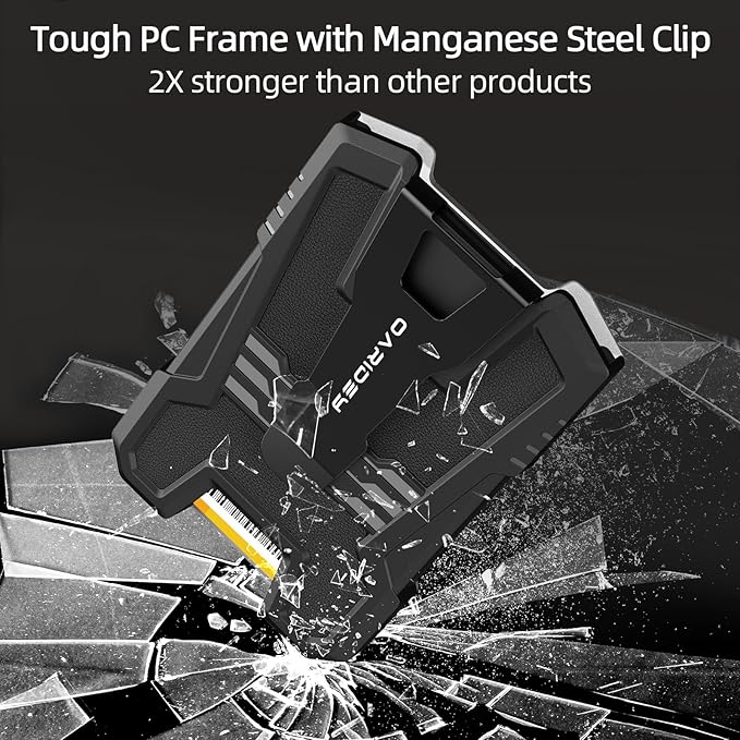 - Innovative Card Fixing Structure: With two embedded elastic silicone grains, our heavy-duty card holder securely holds your cards in place, offering maximum protection.