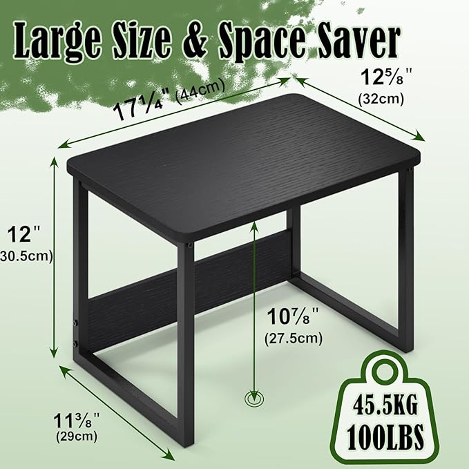 - 【Large Size & Space Saver】Dimensions: 12.6"D x 17.3"W x 12"H. Maximize your work area. This printer shelf is the perfect addition to any home office.