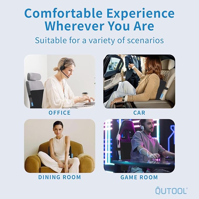 - ERGONOMIC DESIGN: Are you experiencing lower back pain because you spend most of your day sitting in an office chair, gaming chair, car or truck?The QUTOOL lumbar pillow provides excellent support for your back and relieves pain in the middle and lower back and along the sciatic nerve. As an office chair cushion and automobile lumbar support, it helps to maintain the gentle curve of the lower spine and helps you maintain proper sitting posture.