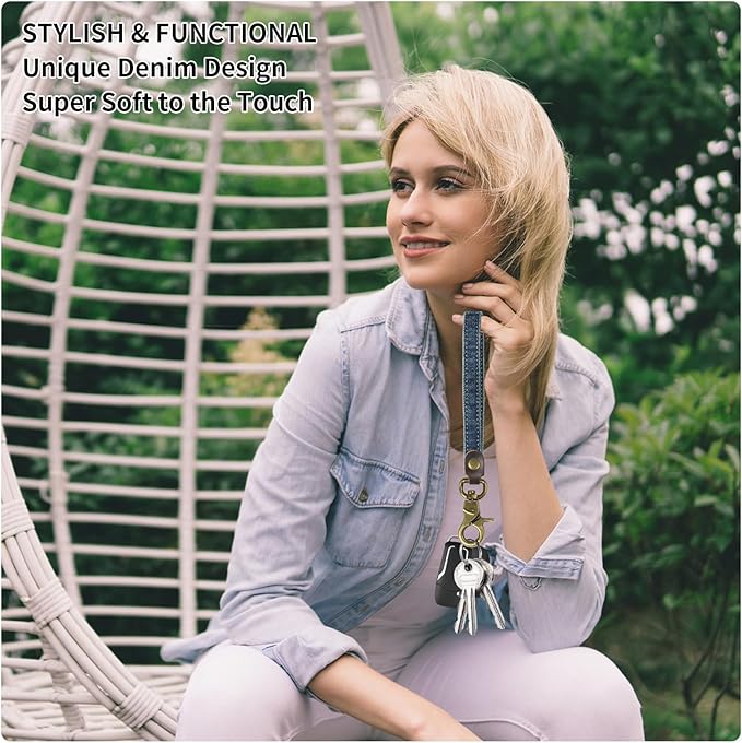Fishent Denim Wristlet Keychain for Women Men, Cute Key Chain, Wrist Lanyards for Car Keys ID Badge Wallet Card Holder