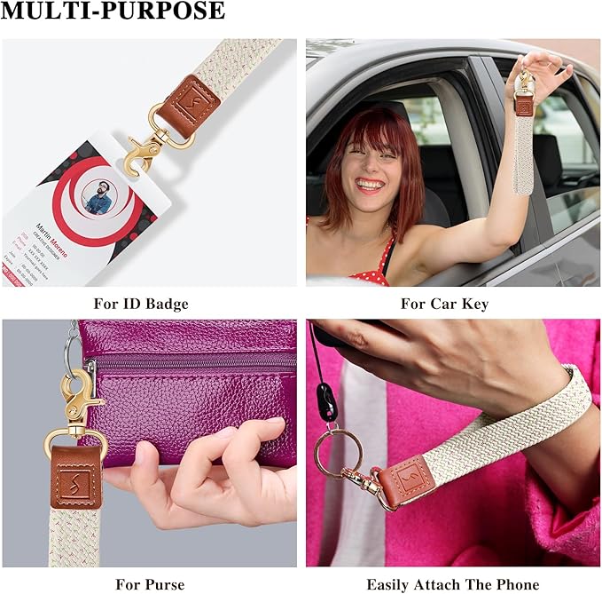 - Multi Function: Our key lanyard elastic anti-drop design wearing it around your wrist, or stuff it in your backpack or purse. The wristlet keychains for women it is a good helper to organize your small items together(car keys ,pill,photocard,airtag,key chain). Hold your essentials safe and anti-loss (airpod, cameras, cellphone). Free your hands by attach it (backpack, wallet, purse).