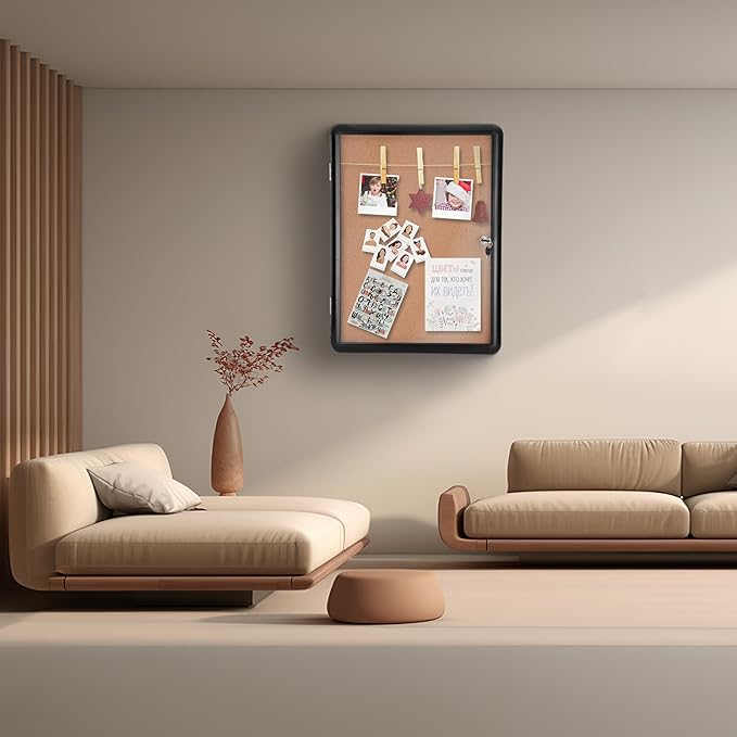 - 【ECO-FRIENDLY MATERIAL】Enclosed Bulletin Board made of soft, resilient, and self-healing Natural Cork that can withstand repeated use of pins or Velcro without distortion.