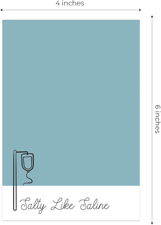 - Unique Designs: These blue nursing designs make writing reminders and notes that much more enjoyable. Includes five different modern designs with funny phrases such as "Nurses Call The Shots" "Coffee Scrubs & Rubber Gloves" "Scrub Life" "Salty Like Saline" and "Trust Me I'm A Nurse".