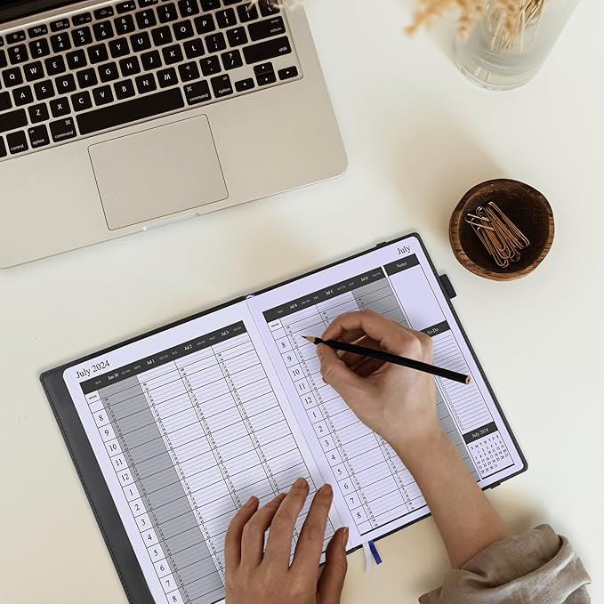 - PROFESSIONAL DESIGN: Features a professional cover, a binding for lay open use, high quality premium paper, highlighted weekends, designed to easily see time and appointments. Stay on top of your busy schedule without wasting time.