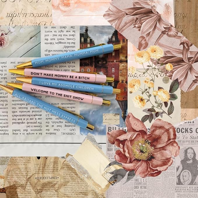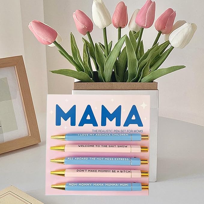 Funny pens,5-Count,Black Ink,Medium Nib 1.0mm,Funny Office Gifts for Coworkers,Personalized Pens Vibrant Funny Quotes Word Daily Pen (MAMA Pens)