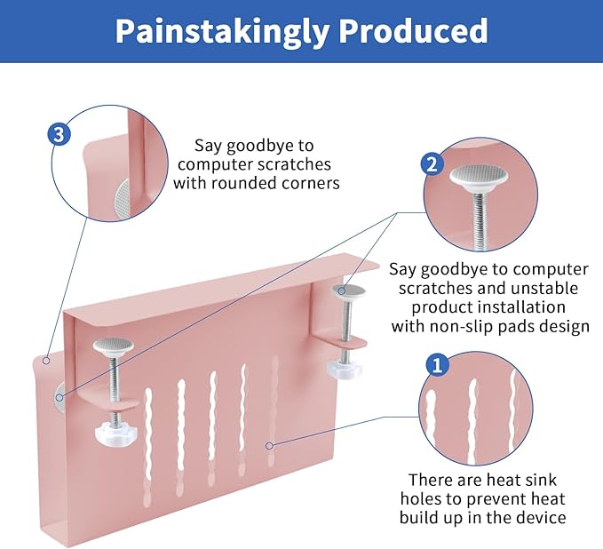 - Multifunctional Desk Side Storage & Anti -Slip And Anti -Scratch Design: This laptop holder can be retrofitted to the side of a desk to easily hold a laptop, tablet, hidden wires, interior accessories, manuals, documents, notebooks, and other items. On the inner surface of our desk side storage rack, the bottom and ends of the clamp have a non-slip sheet, which can help secure laptop in desk side hanging storage to avoid scratching desktop laptops, tablets or other devices