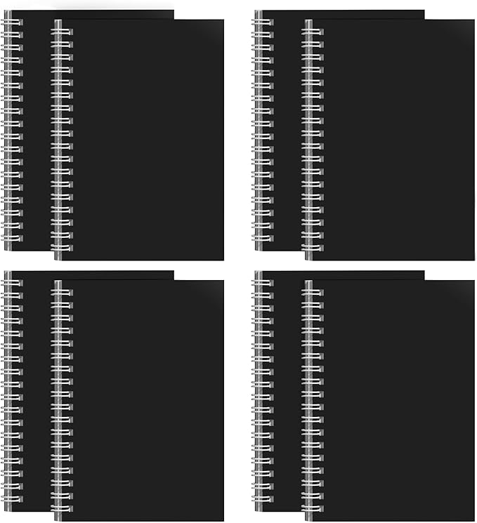 8 Pack Spiral Notebook for Work - 4" x 6" Softcover Notebooks College Ruled for Note Taking, School Supplies,400 Sheets 800 Pages Journals Black