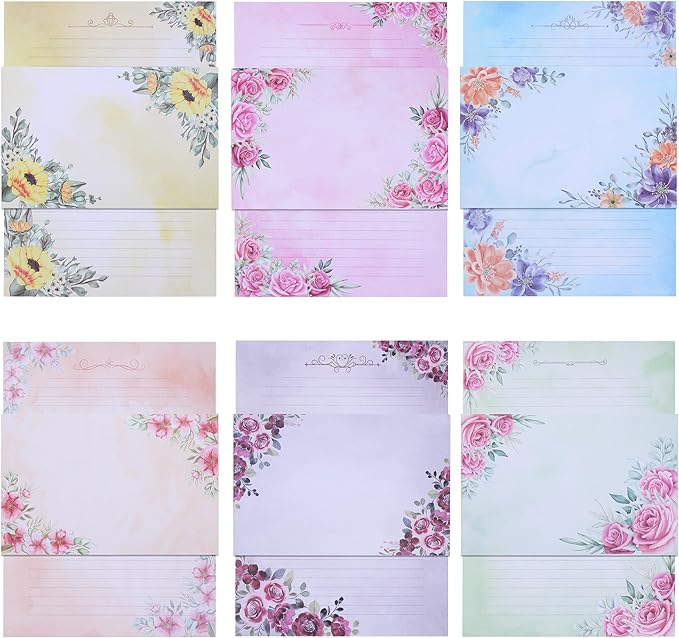 - Featuring 6 unique designs, each set offers a variety of floral and vibrant themes, adding a touch of elegance and charm to your letters.
