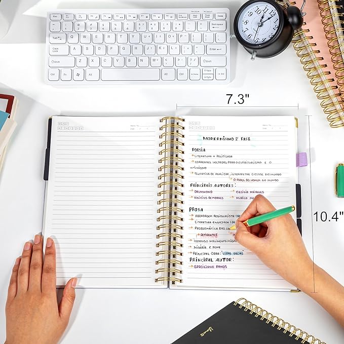 - 360 Pages Thick Spiral Journal: 7.3"x10.4", b5 size with 180 sheets/360 pages college ruled paper to last over whole year, and acid-free paper avoids yellow over time. “Weather”, “Week”, “Memo No” and “Date” are at the top of each page for classification and reference.