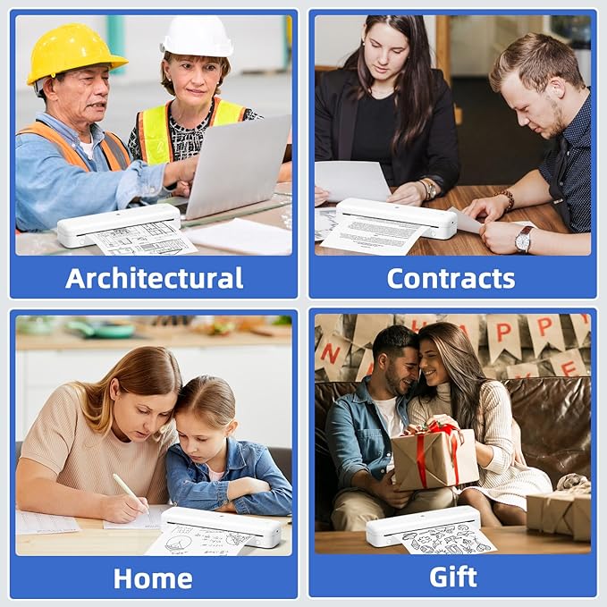 - Phomemo M834 Portable Printer 【Upgrade 2】Supports 5 Sizes & 3 Paper Types: The Phomemo Mobile Portable Printer supports multiple sizes, including 8.5'' x 11'' US Letter, A4, 4.33'', 3.14'', and 2.08" thermal paper. It also supports roll, fold, and ordinary thermal paper types, making it suitable for various scenarios such as note-taking, exams, game cards, DIY projects, diaries, receipts, documents, contracts, and more. Whether you're a business traveler, teacher, truck driver, student, or small business owner, this printer has got you covered.