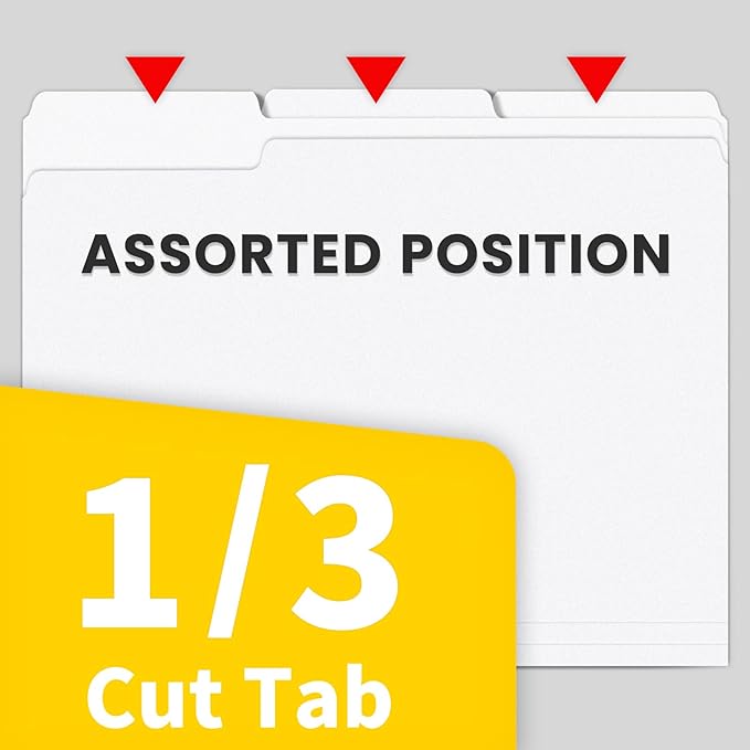 - 1/3 Cut Tab: Navigate through your files seamlessly with the 1/3 cut tab feature. This thoughtful design allows easy labeling, making it simple to categorize and retrieve documents efficiently. Stay organized and in control with these user-friendly folders.