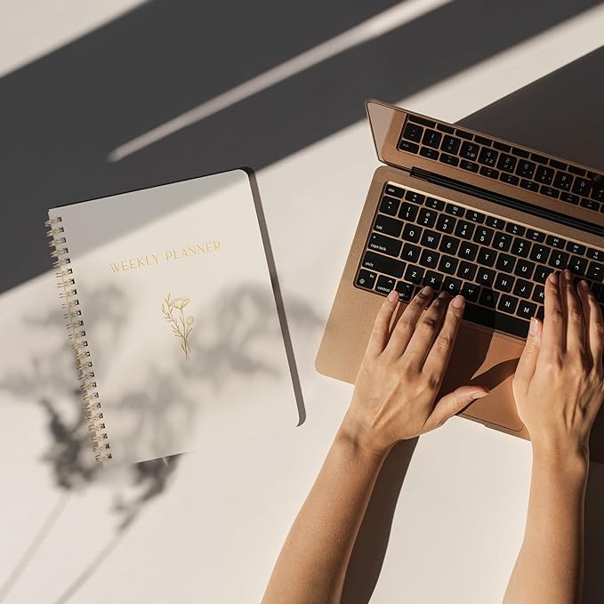 - Absolutely Beautiful & Modern Design: Turn your weekly planning routine into an inspiring experience! The top-notch undated planner stuns with a minimalist, stylish cover in timeless beige with an elegant gold foil and a robust golden ring wire