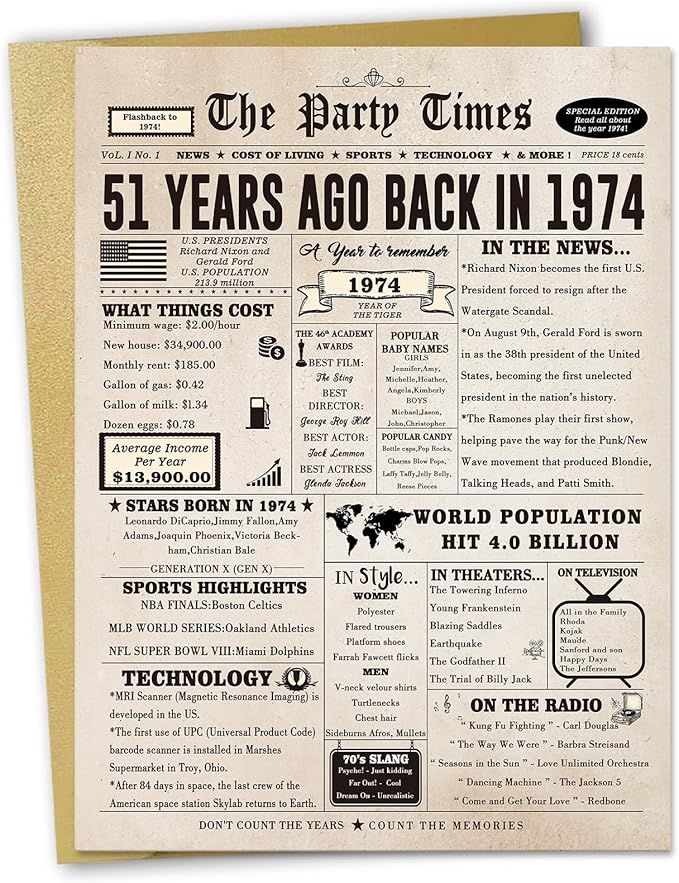 - 【51st Birthday Decorations for Women】This is a good topic. It's interesting to see how much everything cost back then, to see what happened back then.