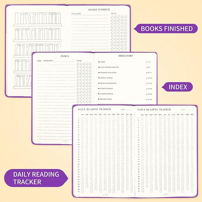 - Multifunctional Design - There is an index preview help you check your reading and rating quickly. Daily reading tracker tracking your reading progress. The challenge of reading inspire you to finish your goals that you set at beginning. Write books you have read and books you borrowed or lent and more.