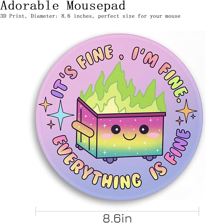 - Novelty Mouse Pad: This travel mouse pad is designed with funny dumpster on fire arts: It's Fine I'm Fine Everything is Fine. The cute and funny mousepad will always bring more happiness and fun to your life. You will get tons of comments on it
