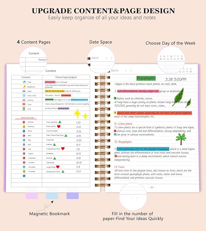 - 【360 Pages Thick Notebook Journal】Each lined journal 360 pages, offering enough space to write in.The new page design allows you to fill in the page numbers yourself. By using a notebook with page numbers and a 4-page blank table of contents, you can jot down important notes from various pages and note them in the front of the journal for easy and fast reference. Each page has a day and day of the week selection to help you keep track of the date.