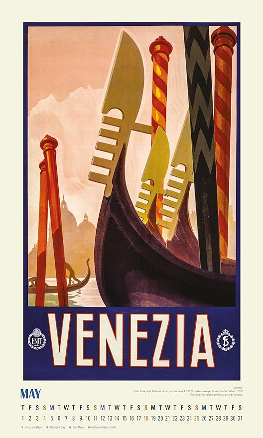- 12-month spiral-bound wall calendar includes 12 travel posters and an introduction with the history of the vintage travel posters.