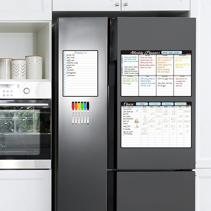 Magnetic Dry Erase Chore Chart and Weekly Calendar - 8.5"x13" Chore Board and Weekly Calendar for Fridge - 6.5"x8.5" List Board and 6 Extra Fine Point Markers Included - Shipped Flat