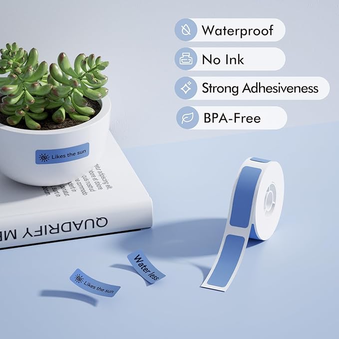 - Refill Labels - One roll of direct thermal labels with size 12 x 40 mm(0.47'' x 1.57''), 160 labels/roll, blue label tape, self-adhesive sticker, black and white printouts