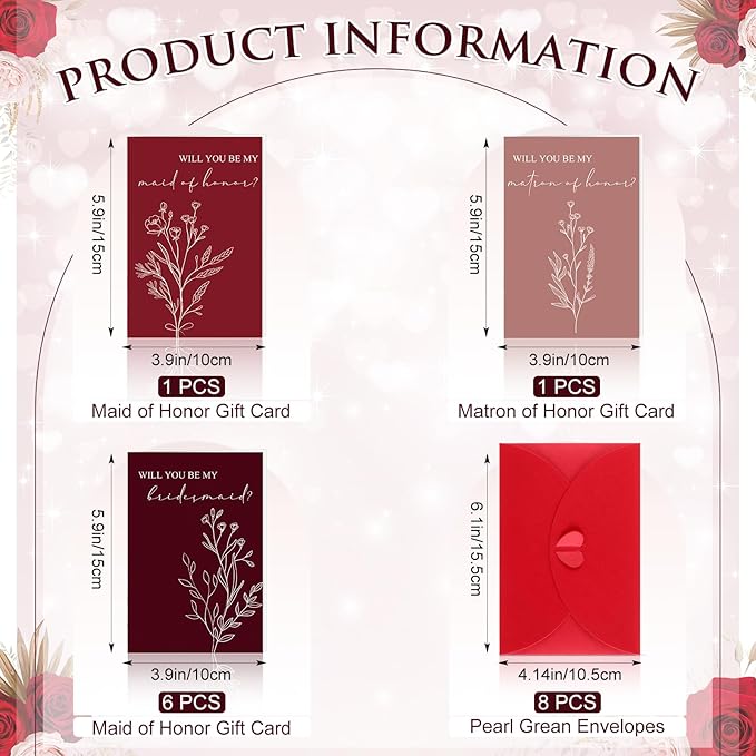 - Invite Your Friends: you can use the bridesmaid proposal card better invite your friends to participate in your wedding; The envelopes are in elegant colors, which can make your cards look more eye catching and charming