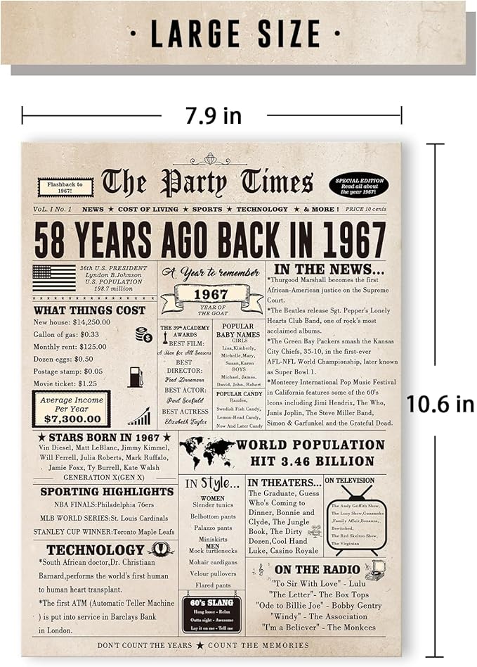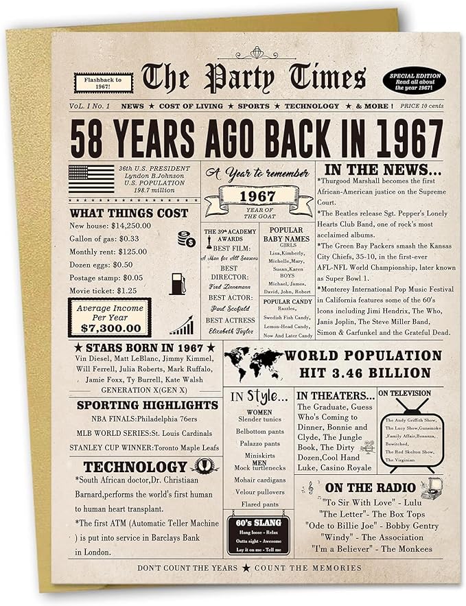 - 【58th Birthday Decorations for Women】This is a good topic. It's interesting to see how much everything cost back then, to see what happened back then.