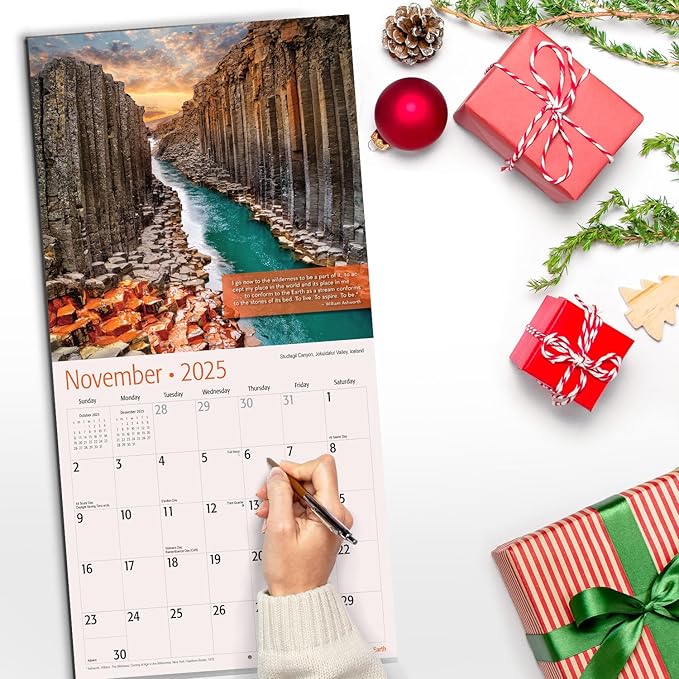 RED EMBER Wonders of Planet Earth with Quotes 2025 Wall Calendar 12 Month | 12" x 24" Open | Thick & Sturdy Paper | Giftable | Calendar 2025