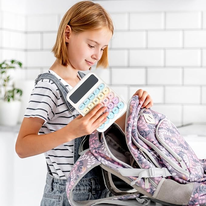 - 【Energy Efficient & Anti-Slip】This cute calculator operates on one AAA battery (not included) and automatically shuts off after 10 minutes or more of inactivity, saving energy and power. Equipped with 4 non-slip pads rims to provide extra friction and stability on a variety of surfaces for quick presses and calculations.