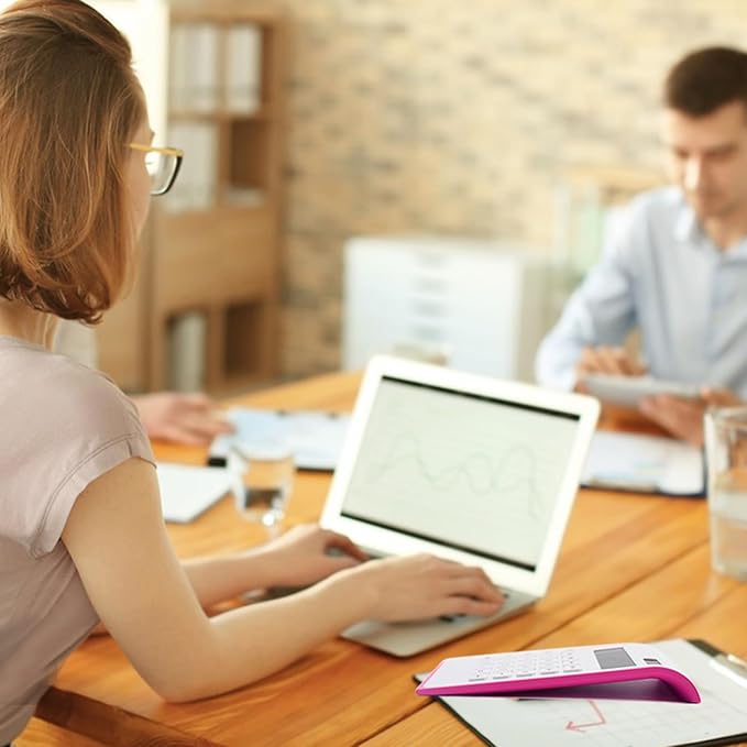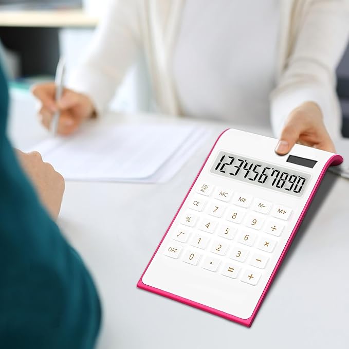 - Elegant and Slim Design -The Hot Pink office supplies and accessories desktop calculator has a sleek and stylish design, good-sized buttons, Large 10-digit LCD display, pretty big one but still very light weight. Your calculation process will be faster and smoother with this calculator’s responsive buttons.