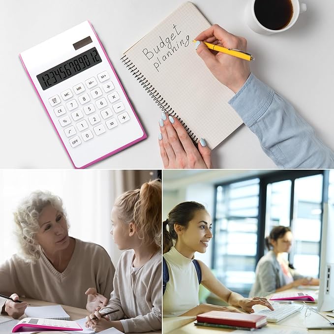 - Quality & Appearance - Desktop calculator large display for women is made of durable ABS to ensure normal daily use; The Elegant and slim design and reasonable button layout make it beautiful and practical, perfect size, fits right on the desk and does all you need in a tight spot.