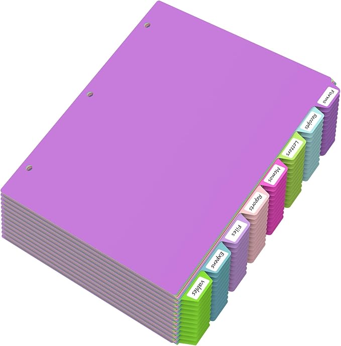 - 【LETTER SIZE 3 RING BINDER DIVIDERS】These page dividers for 3 ring binder with tabs are designed to fit perfectly into any standard three-ring binder and are the perfect size for letter-sized paper. Makes it easy to quickly find what you're looking for, even if you have a lot of different sections in your binder.