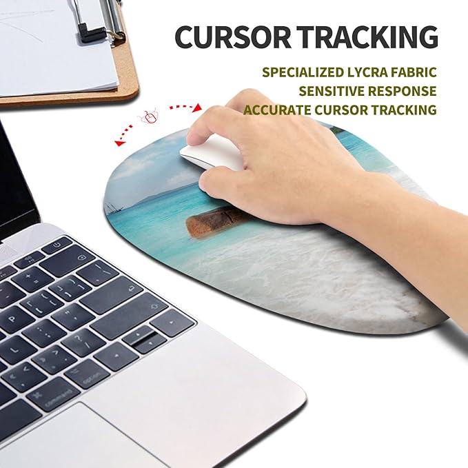Hokafenle Ergonomic Mouse Pad Wrist Support, Terraced Slope Carpal Tunnel Wrist Pad for Mouse with Unibody Memory Foam, Wrist Rest Pain Relief Mousepad (Beach, 11.8x7.9 in)