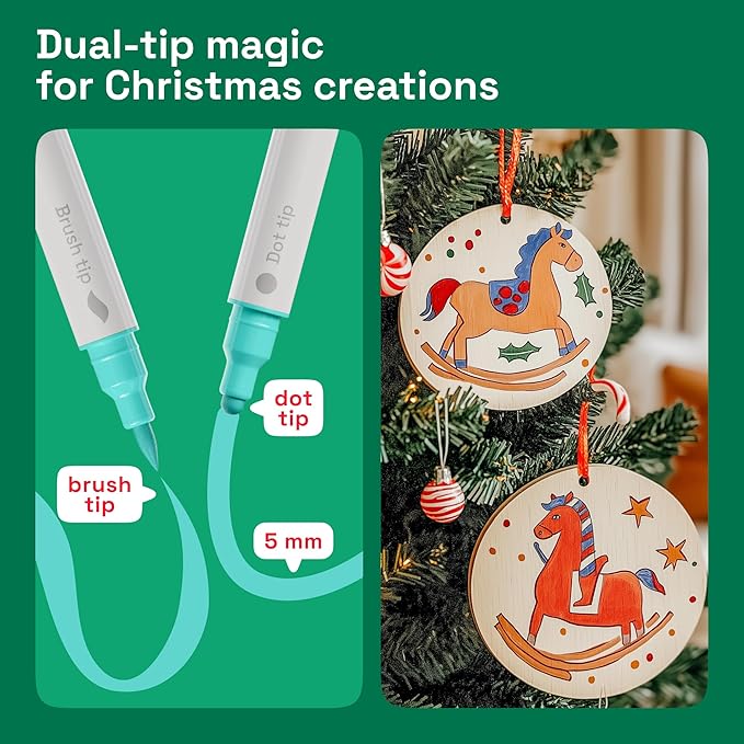 - DUAL TIP: Our acrylic paint markers come with 2 tips for 2x the fun. The acrylic paint pens are equipped with a dot tip and a brush tip. Get the most out of your paint pens acrylic markers with a vibrant palette of colors!