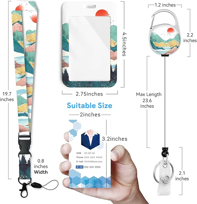 Mountain Badge Holder with Retractable Reel and Breakaway Lanyard,Badge Clips Retractable Heavy Duty Badge Reel,Keychain,ID Holder with Breakaway Lanyard for School Nurse Office