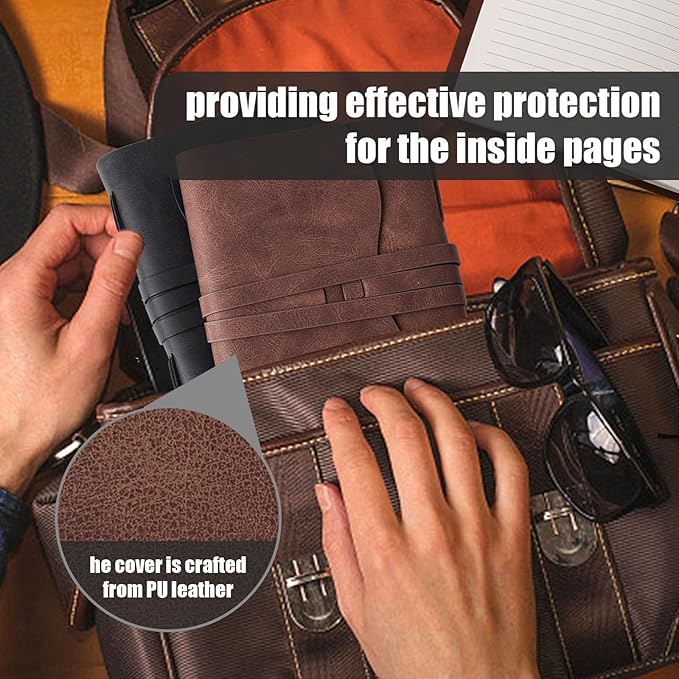 - Perfect Design - The cover is crafted from PU leather, offering a soft feel and providing effective protection for the inside pages. The solid brown color design of the leather journal is dirt-resistant and emanates sophistication.