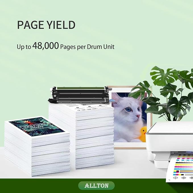 - Page Yield:Up to 48,000 Pages per drum unit,coverage rate of 5% letter A4