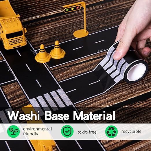 - TSSART Roadway Tape - Made of washi paper, attached with premium adhesive, non-toxic, easy to remove and leave no residue, measures 2.4 inch wide x 40 feet long, great gadget for kid toys and party decor.