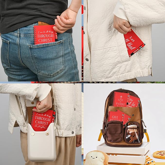 - Product Information: The compact and small notebooks size is 4.13 x 5.43 inches / 10.5 x 13.8 centimeters, making it easy to fit into pockets, handbags, or car glove compartments,It's perfect for jotting down devotional thoughts, Bible verses, or sermon notes, and ideal as a small gift in gift bags or as table gifts