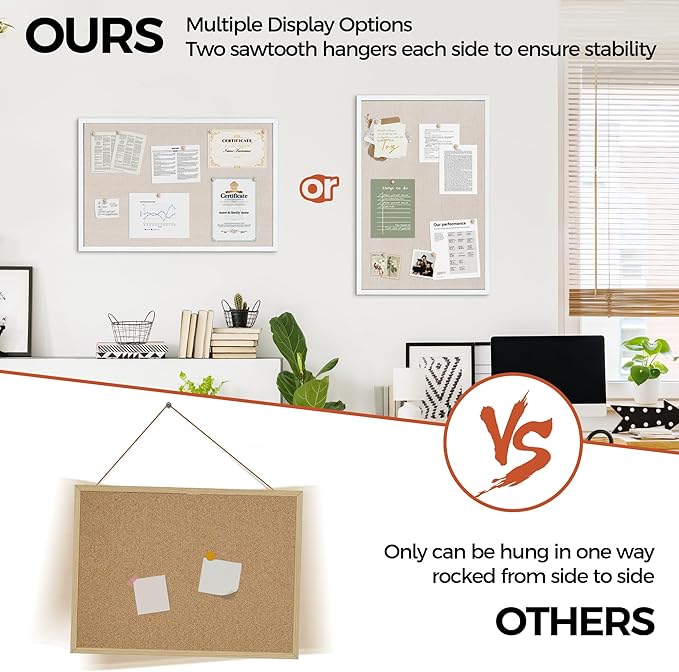 - Unique Design: Easily customize the board orientation to fit your space. Natural cork bulletin board add a classic look to your office or home. Both strong and stylish, it will be a great addition to your space