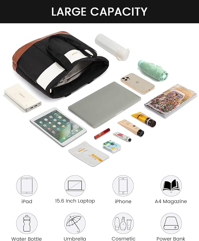 - 🌟【Perfect for Various Occasions】Designed with a back luggage strap, this large laptop tote bag for women can be securely fastened to the handle of your suitcase. Perfect for travel, this feature allows you to navigate airports and stations with ease, freeing your hands for a hassle-free journey.