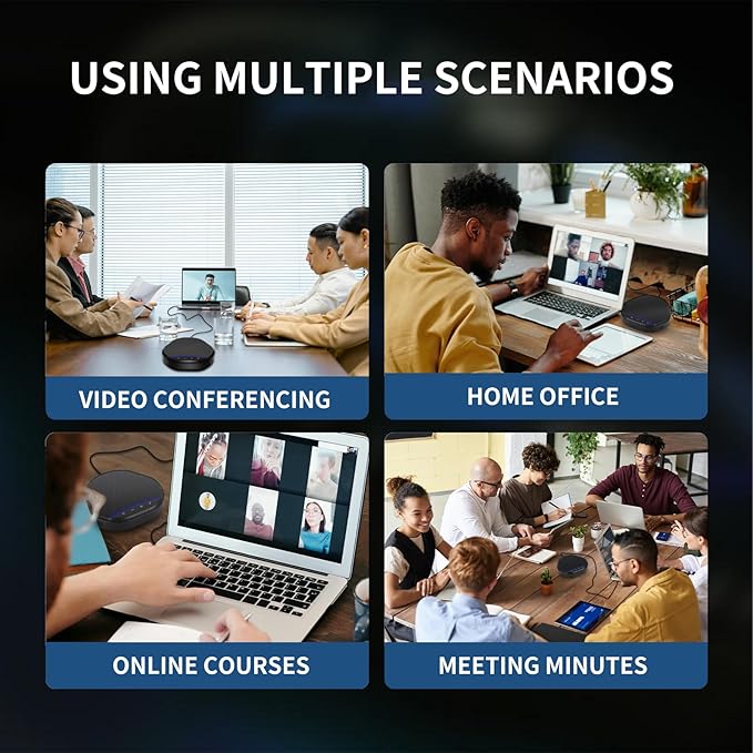 - 360° & 16 Feet Voice Pickup - Immerse yourself in conversations with our speakerphone's multi-microphone array, capturing voices from all directions within a 16-foot range. Our patented AI algorithm minimizes background noise in real-time, ensuring your voice comes through crystal clear, even in noisy environments, for optimal team communication