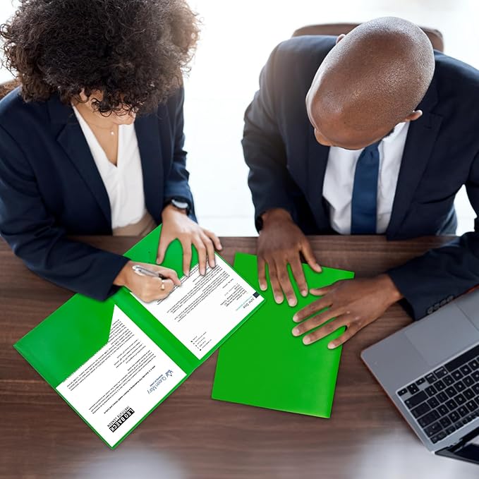 - Heavy duty plastic folders with size 9.4" x 11.6", fit us letter size paper.