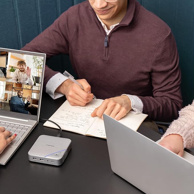 - Effortless Setup and Compatibility: Designed for simple integration with all conferencing systems, the Speakerphone Hub's plug-and-play functionality allows for quick and hassle-free video/audio conferencing setups wherever you go. Compatible with Zoom, Skype, Microsoft Teams, and more, it is the go-to solution for businesses, home offices, on-the-go meetings, and educators.