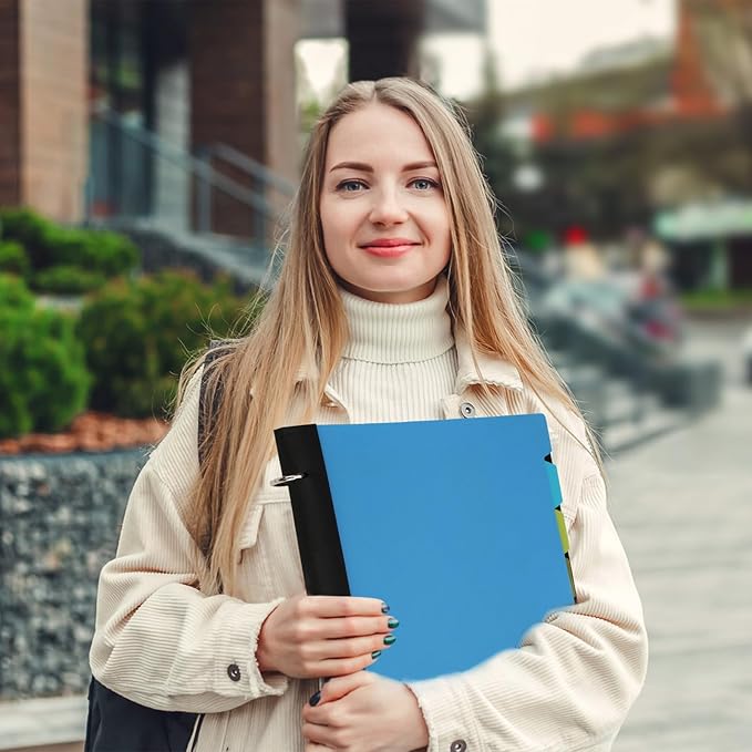 Pivotable Refillable Notebook, 3 Ring Binder Notebooks 1 Inch, Notebook with Dividers and Pockets, Folder Notebook, Flexible Binder, Soft Binders 3 Ring, Foldable Binder- Blue